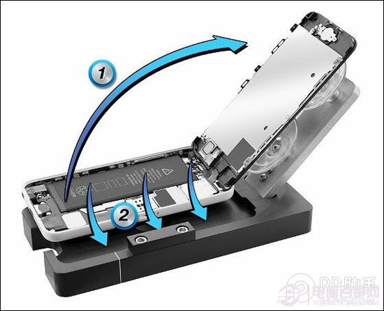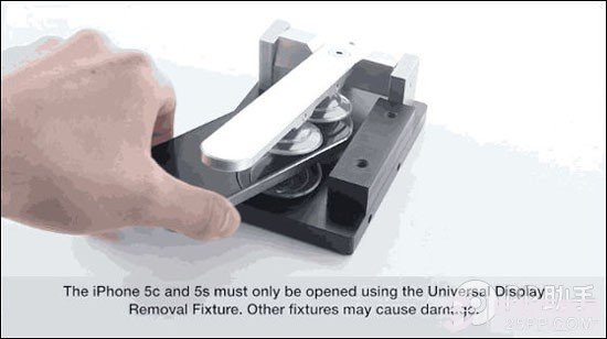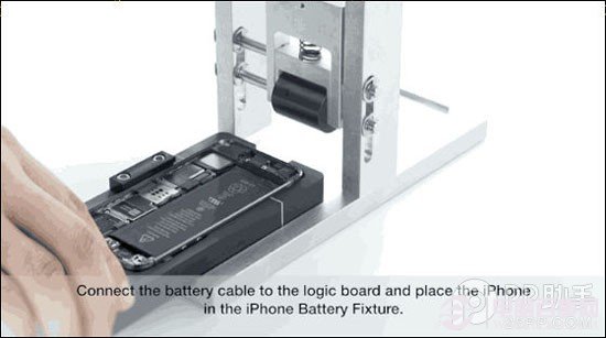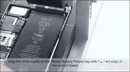另外,有固定胶带和电池的专用工具。将iphone置于专用托盘,使用工具安装电池。