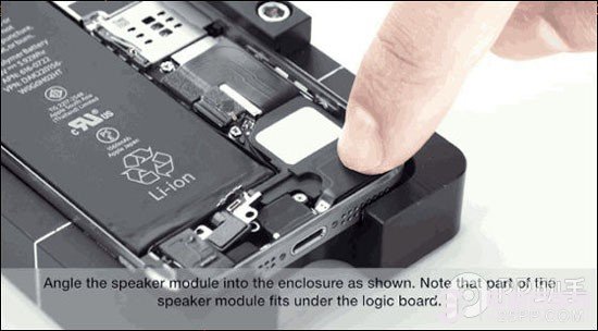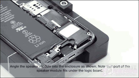 胶带拿掉后,Genius员工在安装电池是会使用另外的胶带。扬声器的拆卸方法很简单,不需要螺丝起子,只需手指轻轻一按便可以弹出。